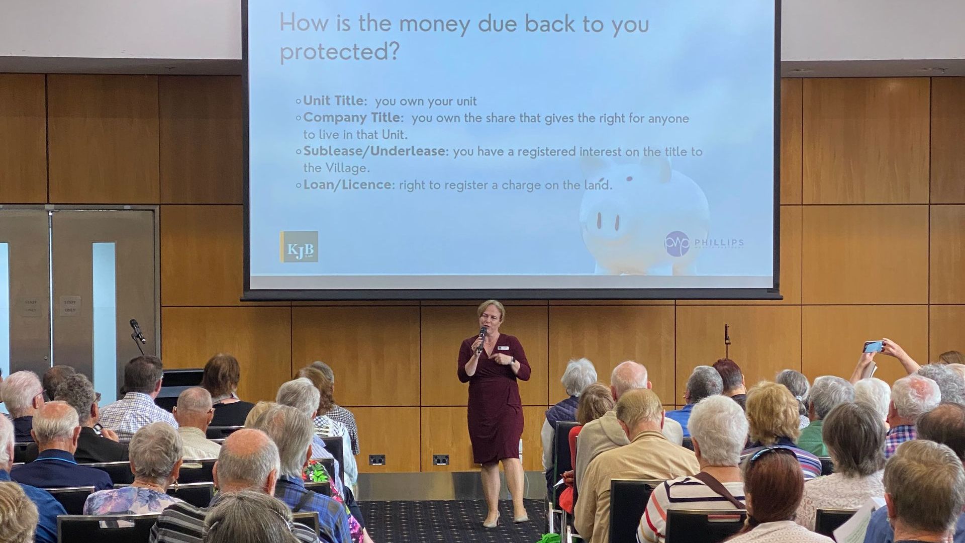 "This is one reason why KJB Law and Phillips Wealth Partners run regular public education seminars on retirement village entry and aged care. We want people to have some basic under-standing before they start looking at retirement village options.”